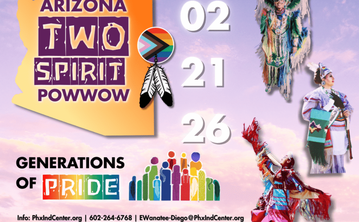 SAVE THE DATE! We are excited to announce that our Annual Two Spirit Powwow will be returning for 2026! We hope to see you there at South Mountain Community College on Feb. 21, 2026. Visit our Two Spirit Powwow event page for more information. For questions, contact 602-264-6768 or email EWanatee-Diego@PhxIndCenter.org