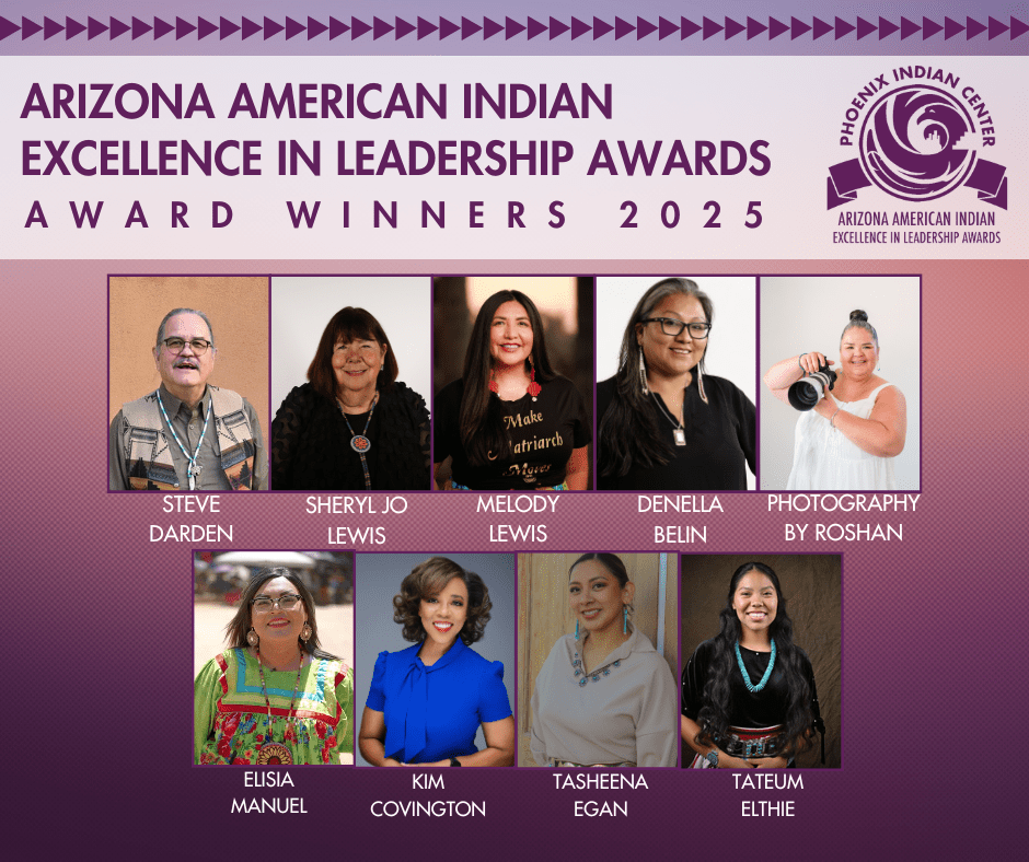 The Phoenix Indian Center proudly announces the 2025 awardees for the Arizona American Indian Excellence in Leadership Awards. The awards, now entering its 42nd year, are given in nine categories for nominees who demonstrate dedication, leadership, and commitment to the advancement and development of the cultural, educational, social, economic, or political welfare of the American Indian Community.